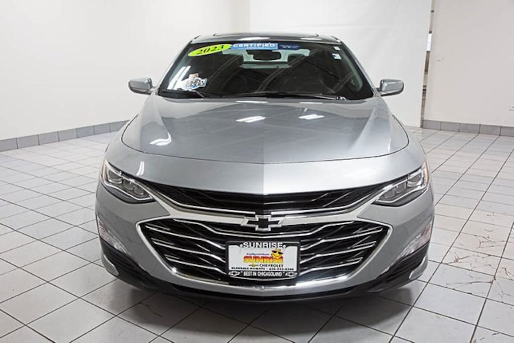 Recent Arrival! 2023 Chevrolet Certified. CARFAX One-Owner. Clean CARFAX. Malibu FWD LT 2LT ONE OWNER, Leather, Sunroof / Moonroof, APPLE CAR PLAY, Bluetooth, Backup Camera, *** GM CERTIFIED ***, Jet Black Leather, Driver Confidence Package, Lane Change Alert w/Side Blind Zone Alert, Navigation System, Rear Cross Traffic Alert, Rear Park Assist.Chevrolet Certified Pre-Owned Details:* Limited Warranty: 12 Month/12,000 Mile (whichever comes first) from certified purchase date* Warranty Deductible: $0* Transferable Warranty* Roadside Assistance* Vehicle History* 24 months/24,000 miles (whichever comes first) Certified Pre-Owned Scheduled Maintenance Plan and 3 days/150 miles (whichever comes first) Vehicle Exchange Program. SiriusXM 3-month trial subscription.* 172 Point Inspection* Powertrain Limited Warranty: 72 Month/100,000 Mile (whichever comes first) from original in-service dateOdometer is 14618 miles below market average!27/35 City/Highway MPGThank you for making your way to Sunrise Chevrolet, your New Chevrolet and certified Chevy dealer in Glendale Heights! Our Chevrolet dealership goes the extra mile every day for our Chicagoland customers. We have one of the "Largest" selections of GM Certified vehicles in the Chicagoland area.