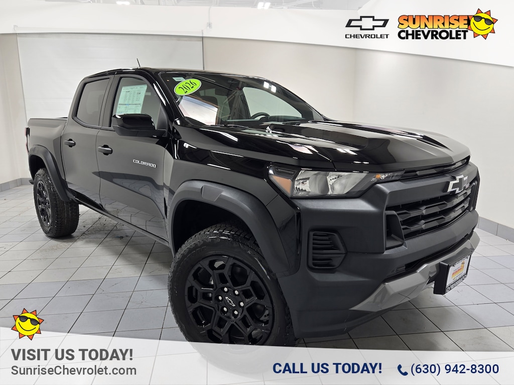 4WD, ABS brakes, Alloy wheels, Compass, Electronic Stability Control, Front dual zone A/C, Heated door mirrors, Illuminated entry, Low tire pressure warning, Remote keyless entry, Traction control.2026 Chevrolet Colorado Trail Boss BlackThank you for making your way to Sunrise Chevrolet, your New Chevrolet and certified Chevy dealer in Glendale Heights! Our Chevrolet dealership goes the extra mile every day for our Chicagoland customers. We have one of the "Largest" selections of GM Certified vehicles in the Chicagoland area.