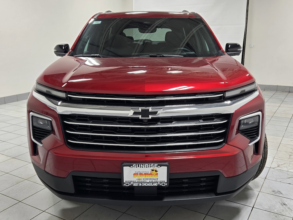 3rd row seats: split-bench, 4-Way Manual Front Passenger Seat Adjuster, 4-Wheel Disc Brakes, 6 Speakers, 6-Speaker Audio System Feature, 8-Way Power Driver Seat Adjuster, ABS brakes, Air Conditioning, AM/FM radio: SiriusXM with 360L, Apple CarPlay/Android Auto, Auto High-beam Headlights, Automatic temperature control, Brake assist, Bumpers: body-color, Child-Seat-Sensing Airbag, Compass, Delay-off headlights, Driver Confidence Package, Driver door bin, Driver vanity mirror, Dual front impact airbags, Dual front side impact airbags, Electronic Stability Control, Emergency communication system: OnStar, Four wheel independent suspension, Front anti-roll bar, Front Bucket Seats, Front Center Armrest, Front dual zone A/C, Front reading lights, Fully automatic headlights, HD Surround Vision, Heated door mirrors, Heated front seats, Heated steering wheel, Illuminated entry, Key Card, Low tire pressure warning, Navigation System, Occupant sensing airbag, Outside temperature display, Overhead airbag, Overhead console, Panic alarm, Passenger door bin, Passenger vanity mirror, Power door mirrors, Power driver seat, Power Dual Glass Panoramic Sliding Sunroof, Power Liftgate, Power Outlet, Power steering, Power windows, Premium Cloth Seat Trim, Radio data system, Rear air conditioning, Rear anti-roll bar, Rear Camera Mirror, Rear Pedestrian Alert, Rear reading lights, Rear window defroster, Rear window wiper, Remote keyless entry, Security system, Speed control, Speed-sensing steering, Spoiler, Steering wheel mounted audio controls, Tachometer, Telescoping steering wheel, Tilt steering wheel, Traction control, Traffic Sign Recognition, Trip computer, Turn signal indicator mirrors, Variably intermittent wipers, Voltmeter, Wheels: 20" Carbon Flash Metallic Aluminum.2026 Chevrolet Traverse LT Radiant Red Tintcoat20/26 City/Highway MPGThank you for making your way to Sunrise Chevrolet, your New Chevrolet and certified Chevy dealer in Glendale Heights! Our Chevrolet dealership goes the extra mile every day for our Chicagoland customers. We have one of the "Largest" selections of GM Certified vehicles in the Chicagoland area.