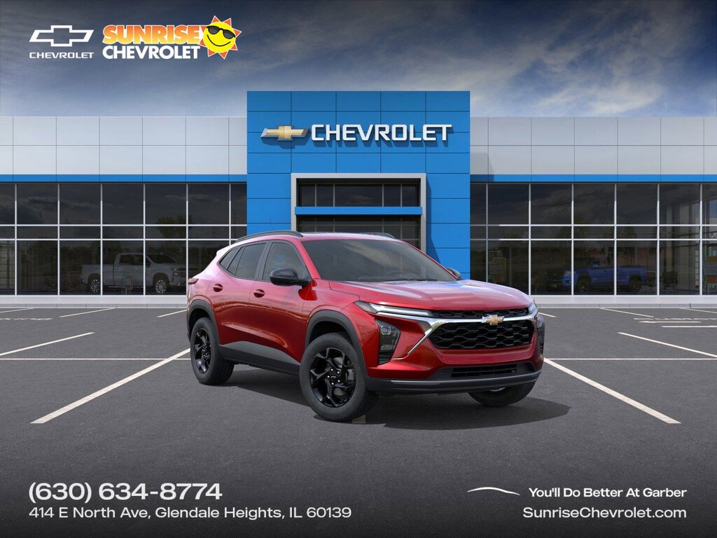 Recent Arrival! 2-Way Adjustable Front Head Restraints, 3.50 Final Drive Axle Ratio, 4-Way Manual Front Passenger Seat Adjuster, 4-Wheel Disc Brakes, 6 Speakers, 6-Speaker Audio System Feature, 6-Way Manual Driver Seat Adjuster, ABS brakes, Adaptive Cruise Control, Air Conditioning, AM/FM radio: SiriusXM, Auto High-beam Headlights, Automatic temperature control, Brake assist, Bumpers: body-color, Cloth/Evotex Seat Trim, Compass, Delay-off headlights, Driver Confidence Package, Driver door bin, Driver vanity mirror, Dual front impact airbags, Dual front side impact airbags, Electronic Stability Control, Emergency communication system: OnStar One Essentials, Exterior Parking Camera Rear, Front anti-roll bar, Front Bucket Seats, Front Center Armrest, Front Doors Keyless Open, Front reading lights, Front wheel independent suspension, Fully automatic headlights, Heated Driver and Front Passenger Seats, Heated Power-Adjustable Outside Mirrors, Heated Steering Wheel, High Gloss Black Mirror Caps, Illuminated entry, Lane Change Alert with Side Blind Zone Alert, Low tire pressure warning, LT Convenience Package, Midnight Edition, Occupant sensing airbag, Outside temperature display, Overhead airbag, Overhead console, Panic alarm, Passenger door bin, Passenger vanity mirror, Power door mirrors, Power Sliding Glass Sunroof with Manual Shade, Power steering, Power windows, Premium audio system: Chevrolet Infotainment 3, Radio data system, Radio: AM/FM Stereo Audio System, Rear Cross Traffic Alert, Rear Park Assist, Rear window defroster, Rear window wiper, Remote keyless entry, Security system, SiriusXM Trial Subscription, Speed control, Split folding rear seat, Spoiler, Steering wheel mounted audio controls, Sunroof Package, Tachometer, Telescoping steering wheel, Tilt steering wheel, Traction control, Trip computer, Variably intermittent wipers, Wheels: : 17" High Gloss Black Alloy, Wheels: 17 Inch Gray-Painted Machined Aluminum Alloy, Wireless Apple CarPlay/Wireless Android Auto, Wireless Charging, Wrapped Steering Wheel.2026 Chevrolet Trax LT Red28/32 City/Highway MPGThank you for making your way to Sunrise Chevrolet, your New Chevrolet and certified Chevy dealer in Glendale Heights! Our Chevrolet dealership goes the extra mile every day for our Chicagoland customers. We have one of the "Largest" selections of GM Certified vehicles in the Chicagoland area. Price Includes:$500 - Chevrolet GM Financial APR & NCC Consumer Cash Program: $500 discount and 5.69% APR for 36 months. $30.28 per $1000 financed. Available to well qualified buyers who finance through GM Financial. XGQ, NCC. Exp. 03/31/2026 This rebate is only available if you also take the 'Chevrolet GM Financial APR & NCC Consumer Cash Program: $500 discount and 5.69% APR for 36 months' rebate. $500 - Chevrolet GMF Bonus Cash Program. Exp. 03/31/2026