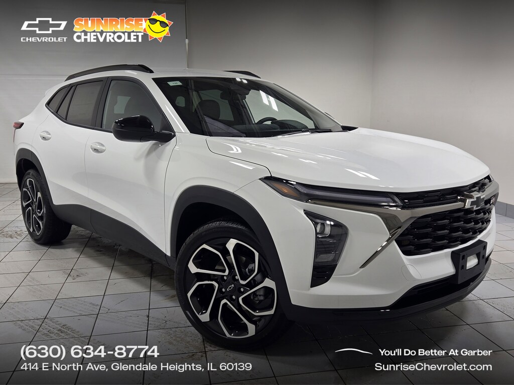 Recent Arrival! 2-Way Adjustable Front Head Restraints, 2-Way Power Driver Lumbar Seat Adjuster, 3.50 Final Drive Axle Ratio, 4-Way Manual Front Passenger Seat Adjuster, 4-Wheel Disc Brakes, 6 Speakers, 6-Speaker Audio System Feature, 8-Way Power Driver Seat Adjuster, ABS brakes, Adaptive Cruise Control, Air Conditioning, AM/FM radio: SiriusXM, Auto High-beam Headlights, Automatic temperature control, Brake assist, Bumpers: body-color, Compass, Delay-off headlights, Driver Confidence Package, Driver door bin, Driver vanity mirror, Dual front impact airbags, Dual front side impact airbags, Electronic Stability Control, Emergency communication system: OnStar One Essentials, Evotex Seat Trim, Exterior Parking Camera Rear, Front anti-roll bar, Front Bucket Seats, Front Center Armrest, Front reading lights, Front wheel independent suspension, Fully automatic headlights, Heated door mirrors, Heated Driver and Front Passenger Seats, Heated front seats, Heated steering wheel, Illuminated entry, Lane Change Alert with Side Blind Zone Alert, Leather steering wheel, License Plate Front Mounting Package, Low tire pressure warning, Occupant sensing airbag, Outside temperature display, Overhead airbag, Overhead console, Panic alarm, Passenger door bin, Passenger vanity mirror, Power door mirrors, Power driver seat, Power steering, Power windows, Preferred Equipment Group 2RS, Premium audio system: Chevrolet Infotainment 3, Radio data system, Radio: AM/FM Stereo Audio System, Rear Cross Traffic Alert, Rear Park Assist, Rear window defroster, Rear window wiper, Remote keyless entry, Security system, SiriusXM Trial Subscription, Speed control, Split folding rear seat, Spoiler, Sport steering wheel, Steering wheel mounted audio controls, Tachometer, Telescoping steering wheel, Tilt steering wheel, Traction control, Trip computer, Variably intermittent wipers, Wheels: 19" Black-Painted Machined Aluminum, Wireless Apple CarPlay/Wireless Android Auto.2026 Chevrolet Trax 2RS Summit White28/32 City/Highway MPGThank you for making your way to Sunrise Chevrolet, your New Chevrolet and certified Chevy dealer in Glendale Heights! Our Chevrolet dealership goes the extra mile every day for our Chicagoland customers. We have one of the "Largest" selections of GM Certified vehicles in the Chicagoland area.