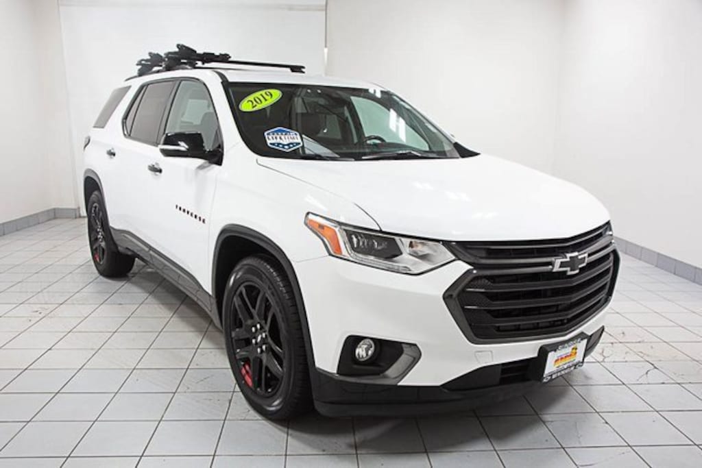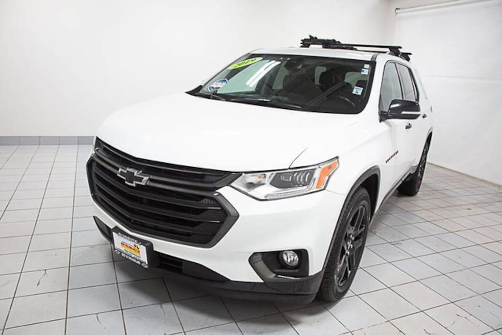Recent Arrival! 2019 Chevrolet Clean CARFAX. Traverse AWD Premier Leather, Sunroof / Moonroof, Navigation, 3rd Row Seat, APPLE CAR PLAY, Bluetooth, Backup Camera, AWD, Apple CarPlay/Android Auto, Black Accent Package (LPO), Black Door Handles, Black Finish Grille (LPO), Bose Premium 10-Speaker Audio System Feature, Dual SkyScape 2-Panel Power Sunroof, Front & Rear Black Bowtie Emblems (LPO), Heavy-Duty Cooling System, Navigation System, Ornamentation, Preferred Equipment Group 1LZ, Redline Edition, Trailering Equipment, Wheels: 20" Gloss Black Painted Alum w/Red Stripes.