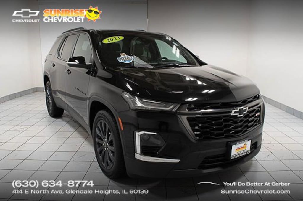 Recent Arrival! 2023 Chevrolet Certified. CARFAX One-Owner. Clean CARFAX. Traverse AWD RS ONE OWNER, Leather, Sunroof / Moonroof, Navigation, 3rd Row Seat, APPLE CAR PLAY, Bluetooth, Backup Camera, *** GM CERTIFIED ***, AWD, Heavy-Duty Cooling System, Hitch Guidance w/Hitch View, Navigation System, Trailering Assist Guidelines, Trailering Equipment.Chevrolet Certified Pre-Owned Details:* Roadside Assistance* 24 months/24,000 miles (whichever comes first) Certified Pre-Owned Scheduled Maintenance Plan and 3 days/150 miles (whichever comes first) Vehicle Exchange Program. SiriusXM 3-month trial subscription.* Vehicle History* Transferable Warranty* Warranty Deductible: $0* 172 Point Inspection* Limited Warranty: 12 Month/12,000 Mile (whichever comes first) from certified purchase date* Powertrain Limited Warranty: 72 Month/100,000 Mile (whichever comes first) from original in-service dateOdometer is 5019 miles below market average!Thank you for making your way to Sunrise Chevrolet, your New Chevrolet and certified Chevy dealer in Glendale Heights! Our Chevrolet dealership goes the extra mile every day for our Chicagoland customers. We have one of the "Largest" selections of GM Certified vehicles in the Chicagoland area.