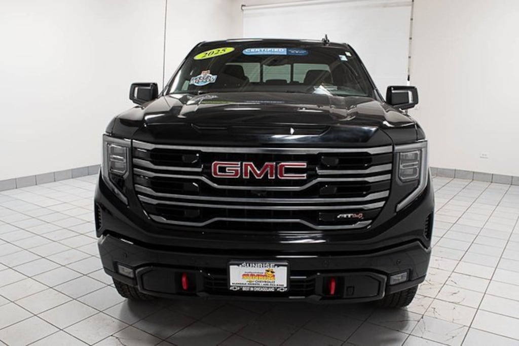 Recent Arrival! 2025 GMC Certified. CARFAX One-Owner. Clean CARFAX. Sierra 1500 4WD AT4 ONE OWNER, Leather, Sunroof / Moonroof, APPLE CAR PLAY, Bluetooth, Backup Camera, *** GM CERTIFIED ***, 10-Speed Automatic, 4WD, Jet Black With Kalahari Accents Leather, AT4 Preferred Package, AT4 Premium Package, Off-Road High Clearance Step (LPO), Power Sliding Rear Window w/Rear Defogger, Universal Home Remote.GMC Certified Pre-Owned Details:* 172 Point Inspection* Roadside Assistance* Vehicle History* Warranty Deductible: $0* Powertrain Limited Warranty: 72 Month/100,000 Mile (whichever comes first) from original in-service date* Transferable Warranty* 24 months/24,000 miles (whichever comes first) Certified Pre-Owned Scheduled Maintenance Plan and 3 days/150 miles (whichever comes first) Vehicle Exchange Program. SiriusXM 3-month trial subscription* Limited Warranty: 12 Month/12,000 Mile (whichever comes first) from certified purchase datePriced below KBB Fair Purchase Price! Odometer is 3062 miles below market average!22/26 City/Highway MPGThank you for making your way to Sunrise Chevrolet, your New Chevrolet and certified Chevy dealer in Glendale Heights! Our Chevrolet dealership goes the extra mile every day for our Chicagoland customers. We have one of the "Largest" selections of GM Certified vehicles in the Chicagoland area.