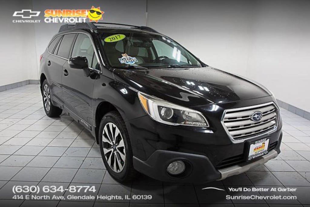 2017 Subaru Clean CARFAX. Outback AWD 3.6R Limited Navigation, Bluetooth, Backup Camera, Aha, Eyesight & Navigation & High Beam Assist & RAB, harman/kardon Surround Sound Speaker System, High Beam Assist, Radio: Subaru Starlink 7.0" Multimedia Nav System, Reverse Auto Brake, Smartphone Integration, Vehicle Information Display.Priced below KBB Fair Purchase Price!20/27 City/Highway MPGAwards:* ALG Residual Value Awards, Residual Value Awards * 2017 IIHS Top Safety Pick+ * 2017 KBB.com 12 Best Family Cars * 2017 KBB.com 10 Most Comfortable Cars Under $30,000 * 2017 KBB.com 10 Best All-Wheel-Drive Vehicles Under $25,000 * 2017 KBB.com 10 Most Awarded Brands * 2017 KBB.com Brand Image Awards * 2017 KBB.com 5-Year Cost to Own AwardsThank you for making your way to Sunrise Chevrolet, your New Chevrolet and certified Chevy dealer in Glendale Heights! Our Chevrolet dealership goes the extra mile every day for our Chicagoland customers. We have one of the "Largest" selections of GM Certified vehicles in the Chicagoland area.